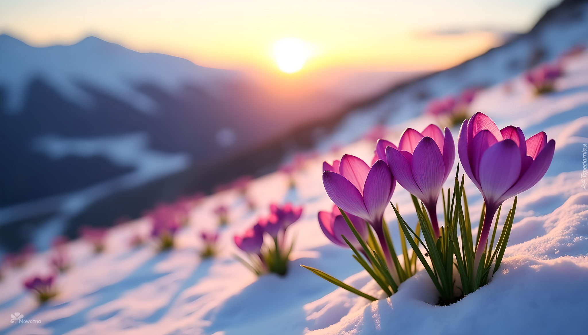 Edytor tapety: Krokusy w śniegu na wzgórzu