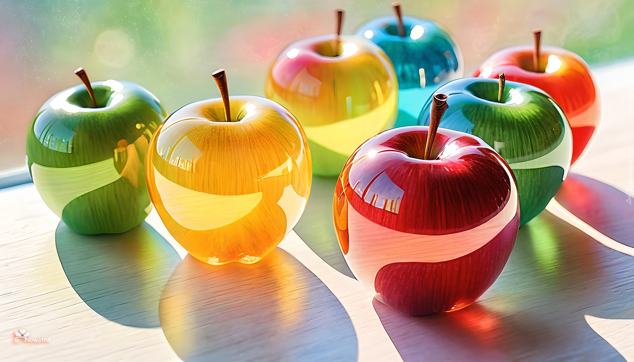 Edytor tapety: Grafika z kolorowymi szklistymi jabłkami