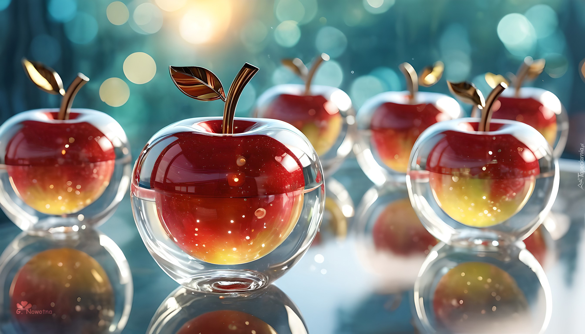 Edytor tapety: Odbicie szklanych jabłek w grafice