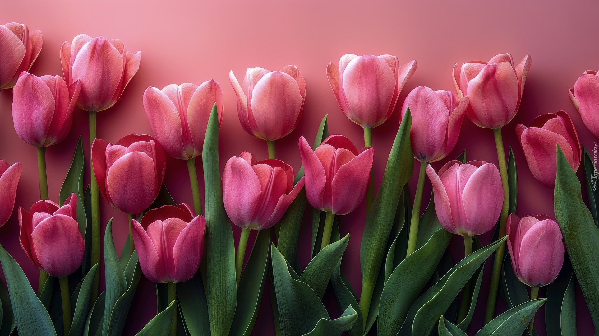 Edytor tapety: Różowe tulipany ułożone na różowym tle