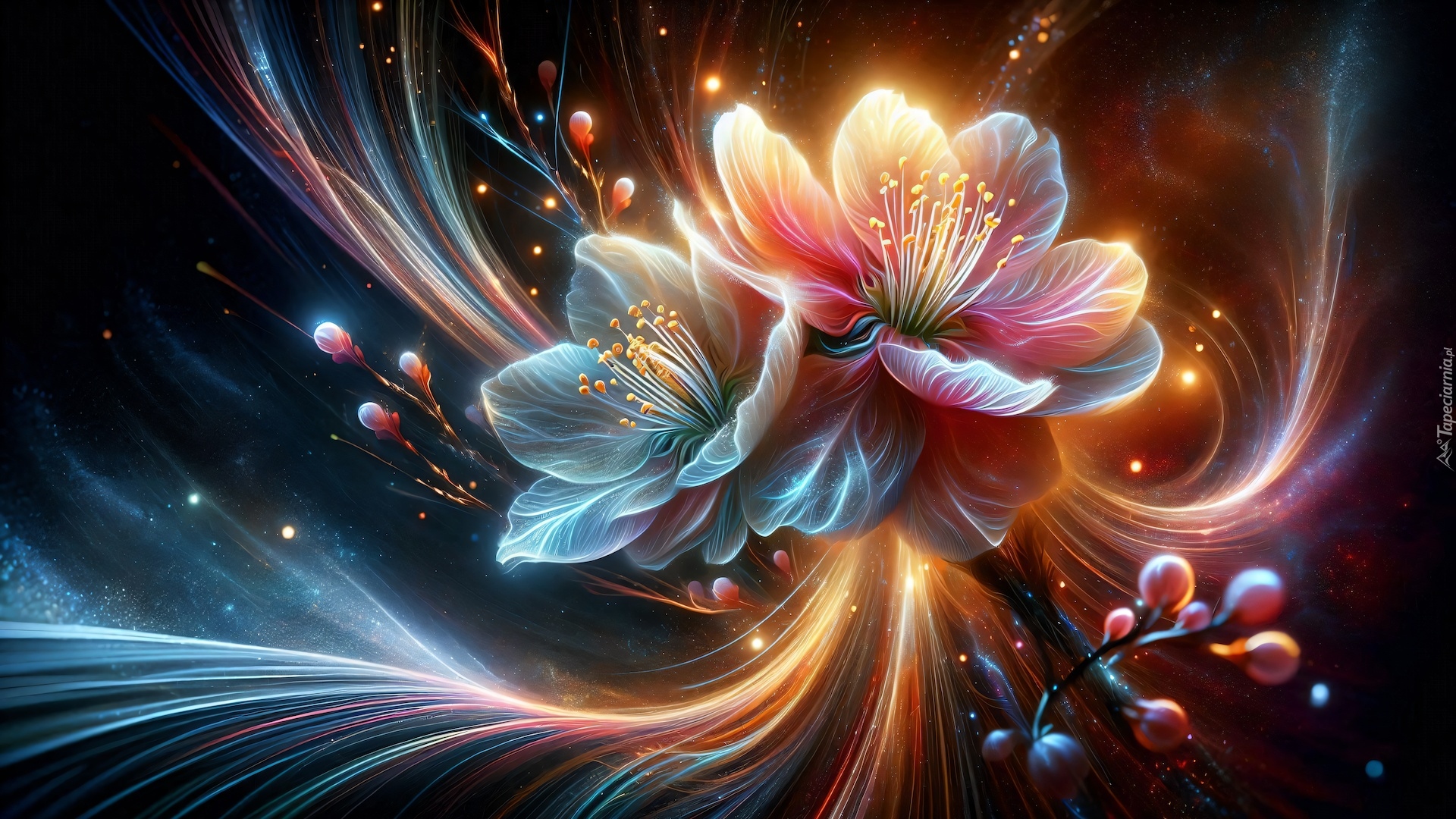 Edytor tapety: Rozświetlone kolorowe kwiaty z pręcikami w grafice