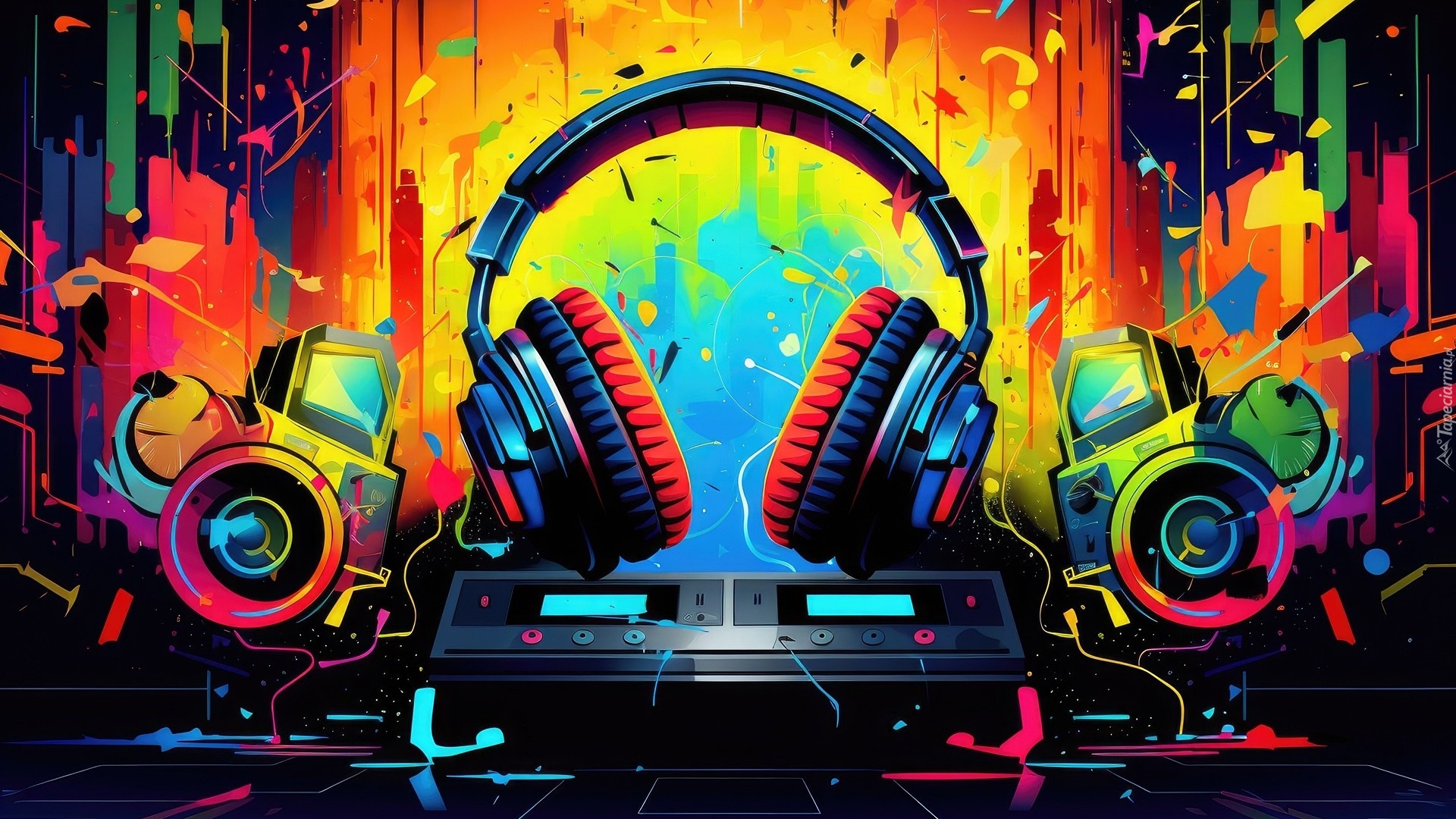 Edytor tapety: Słuchawki i sprzęt muzyczny w kolorowej grafice