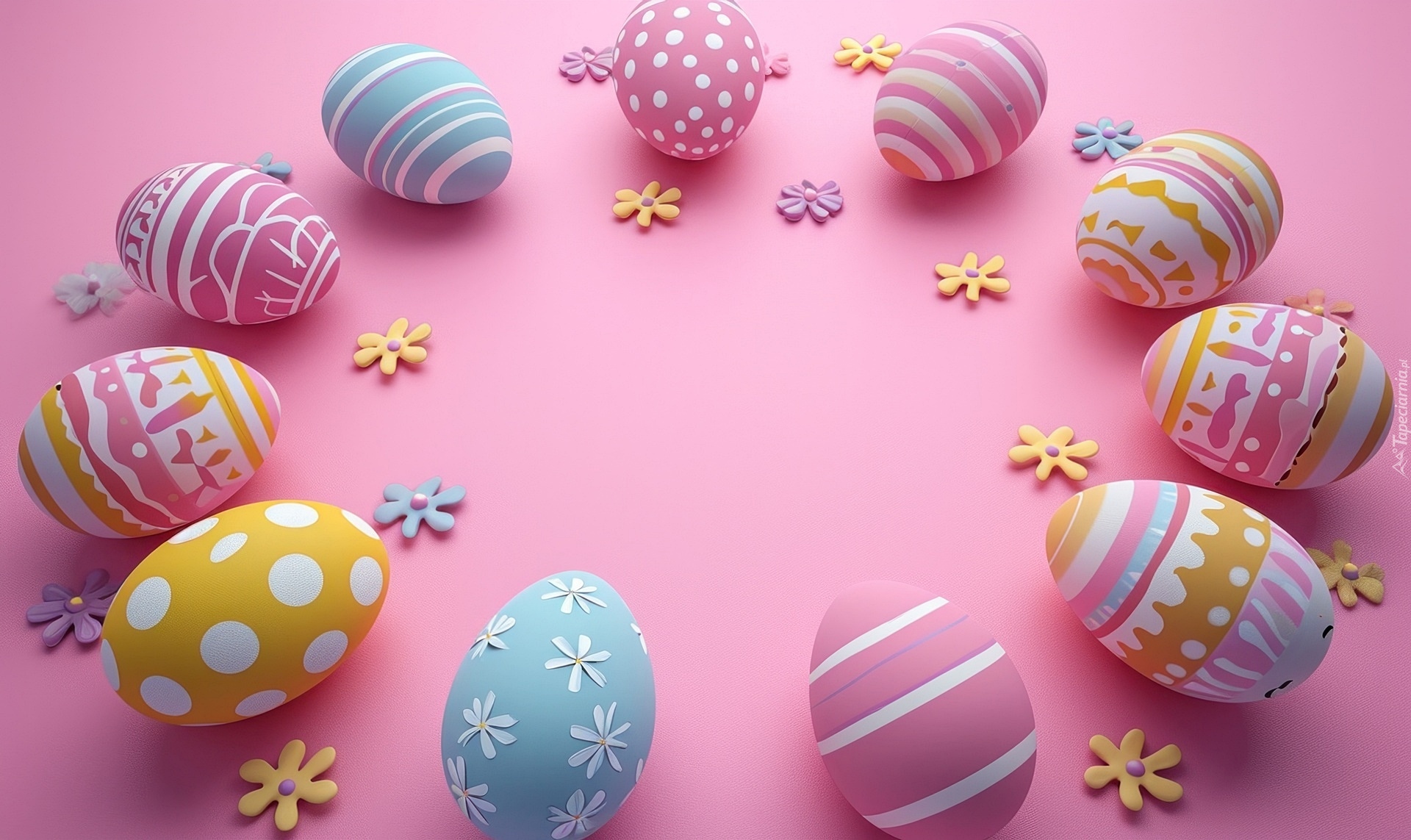 Edytor tapety: Kolorowe pisanki na różowym tle