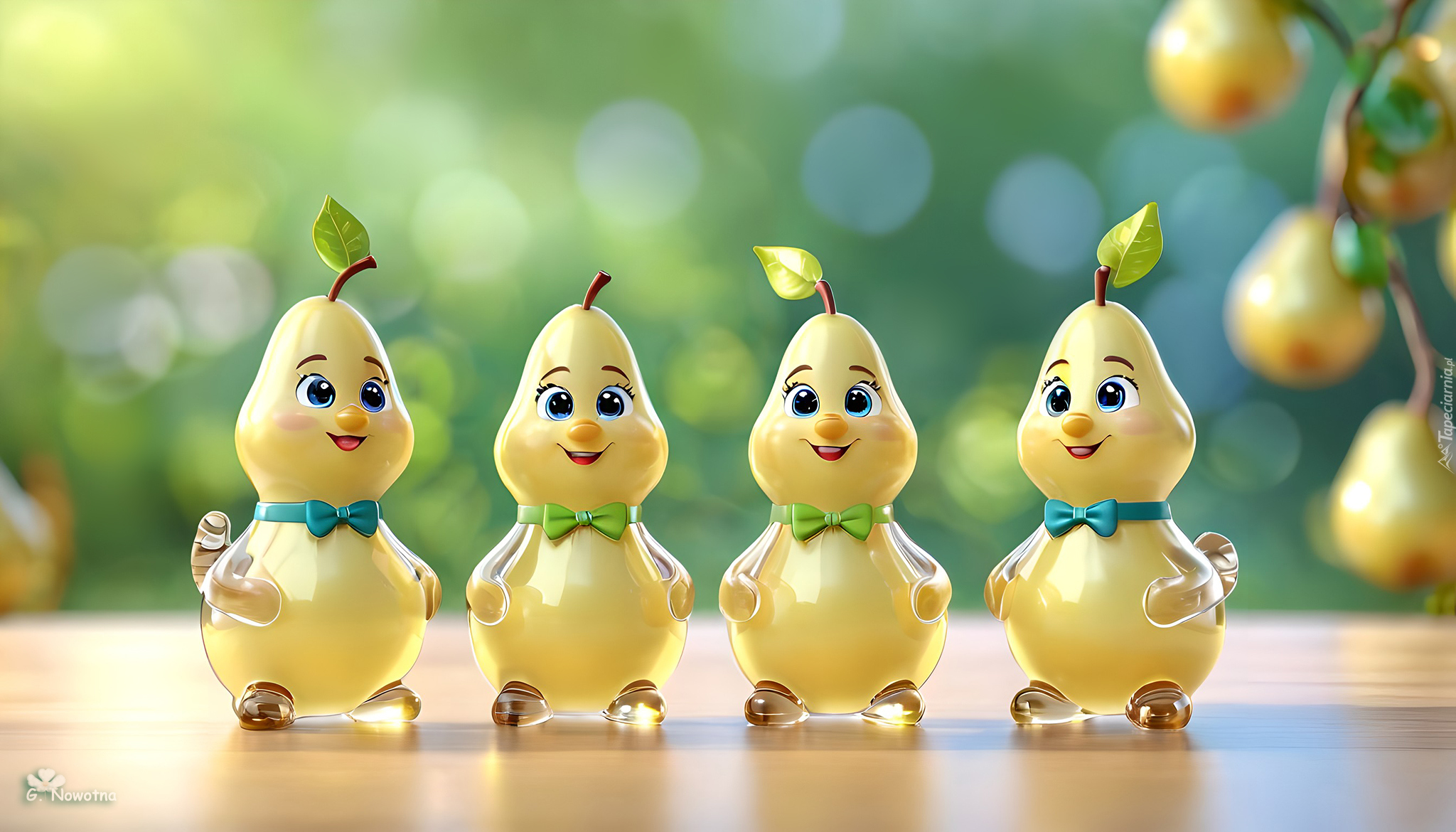Edytor tapety: Uśmiechnięte szklane żółte gruszki w grafice