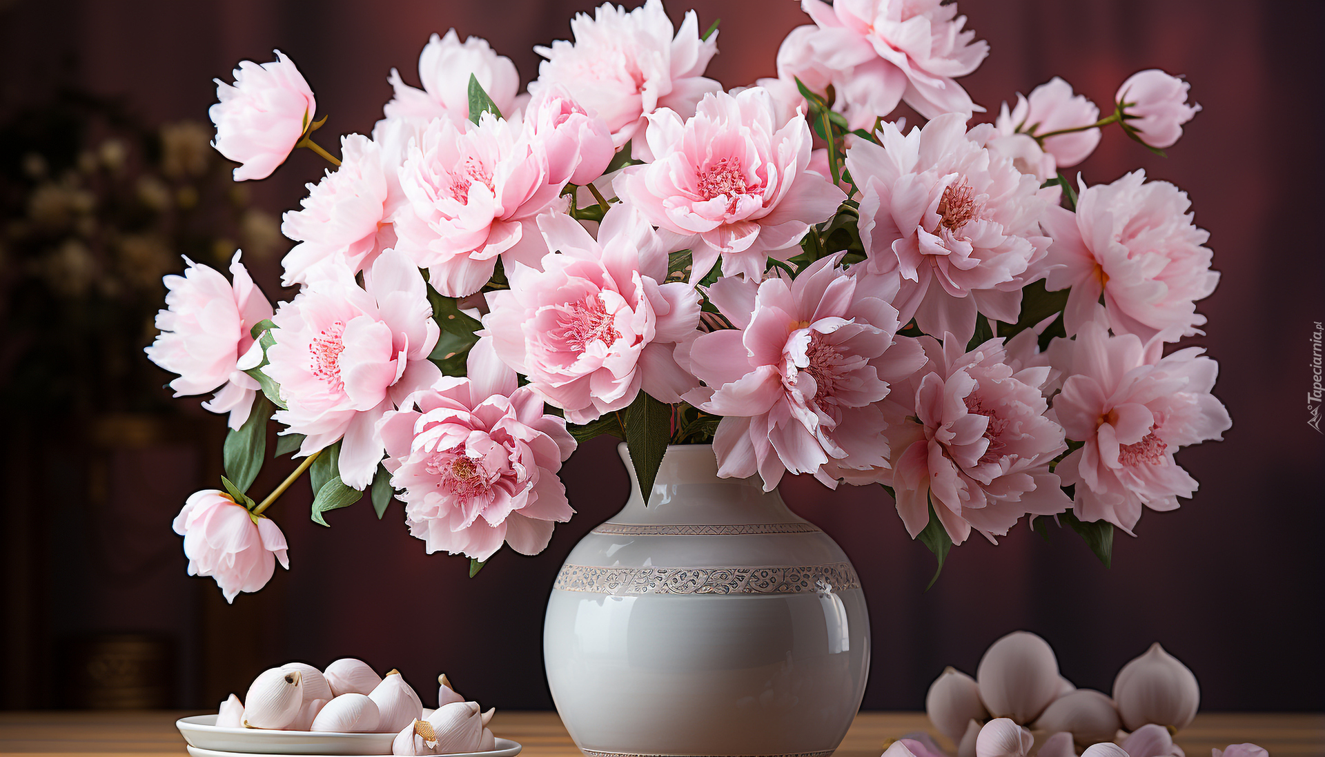 Edytor tapety: Rozkwitnięte różowe piwonie w wazonie