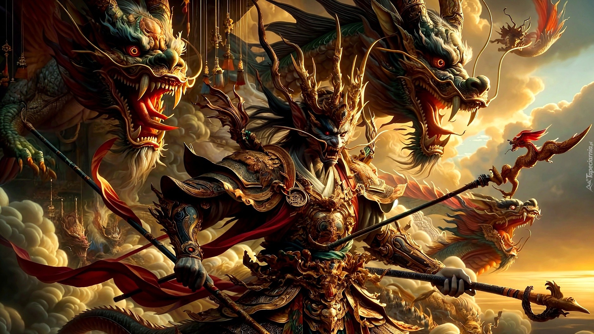 Edytor tapety: Wojownik i smoki w grafice fantasy