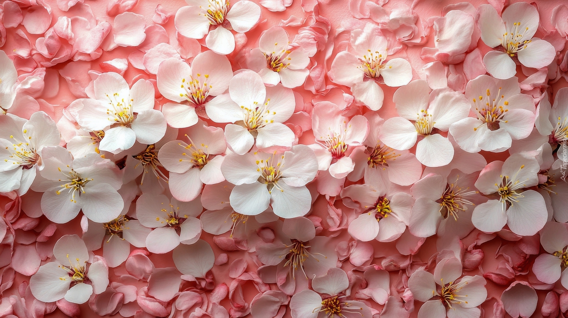 Edytor tapety: Białe drobne kwiaty na różowych płatkach