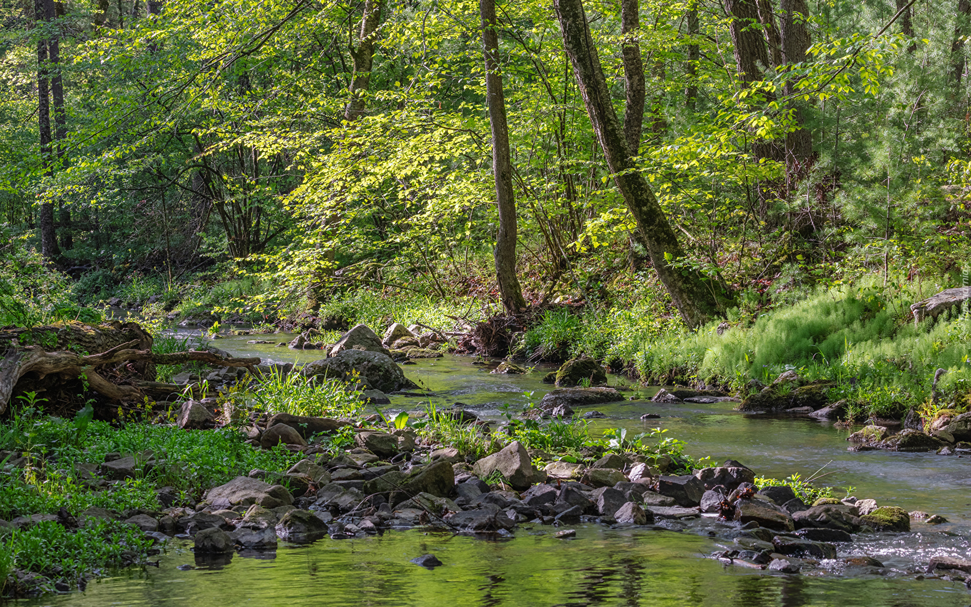 Edytor tapety: Kamienie na leśnym potoku