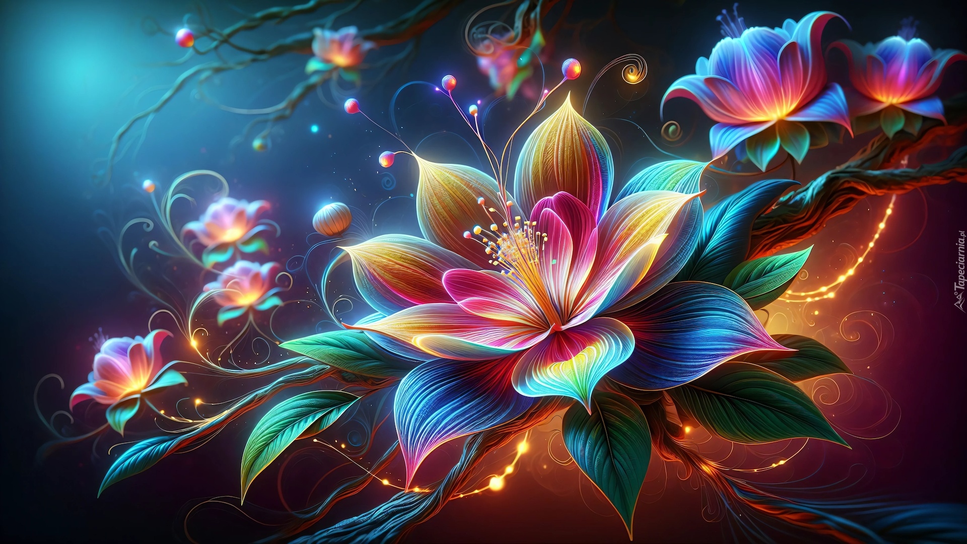 Edytor tapety: Rozwinięty kolorowy kwiat na kolorowym tle