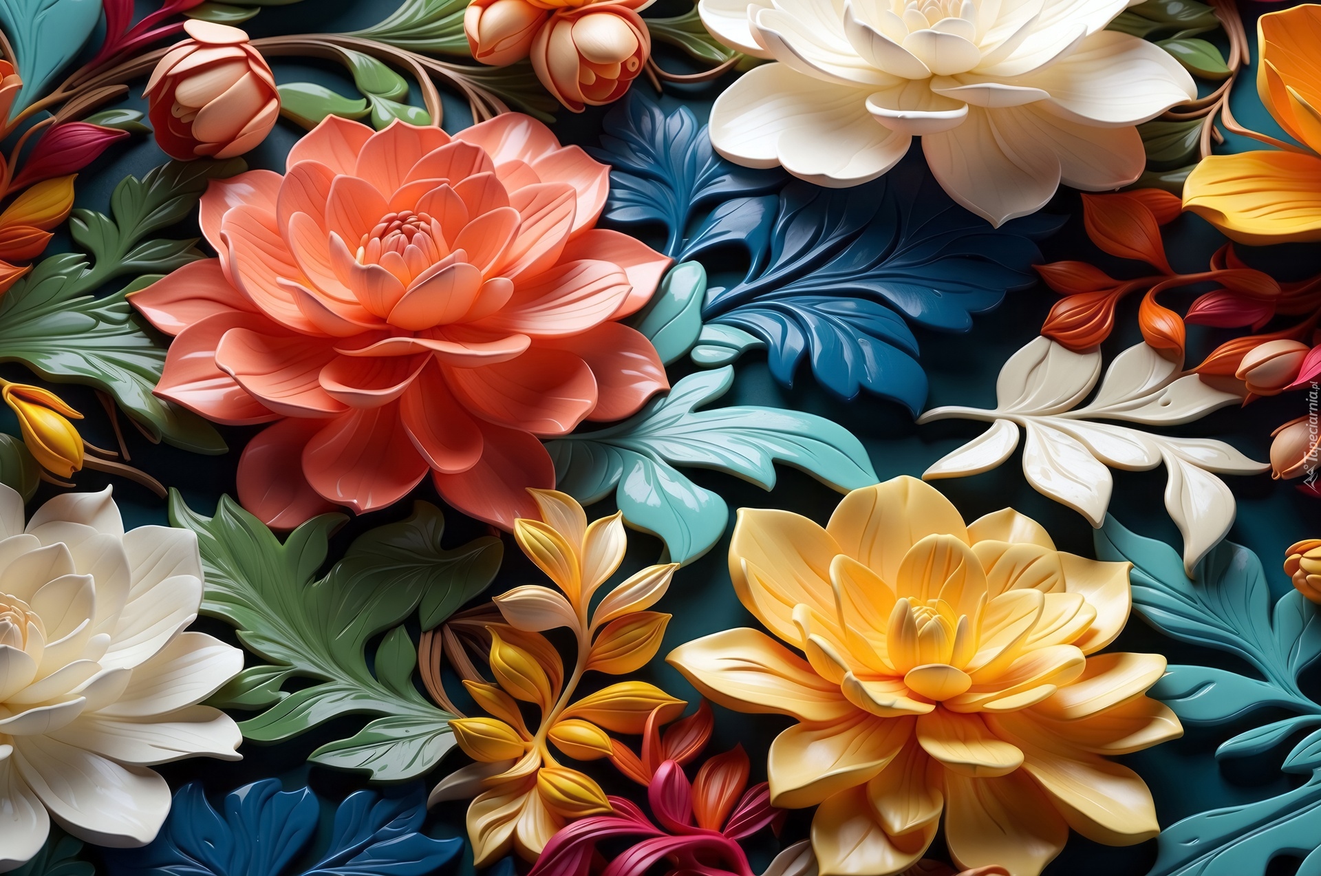 Edytor tapety: Grafika z kolorowymi kwiatami i listkami