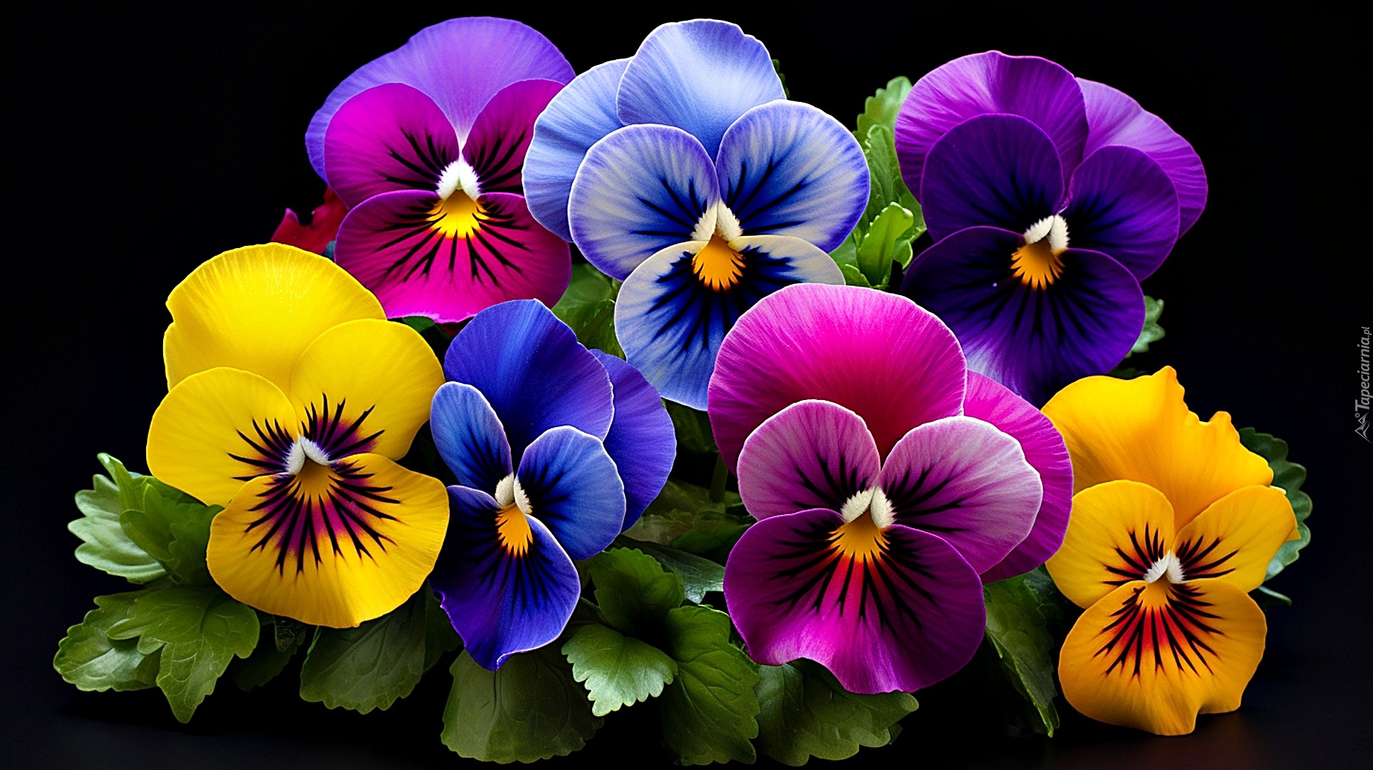 Edytor tapety: Kolorowe bratki na czarnym tle