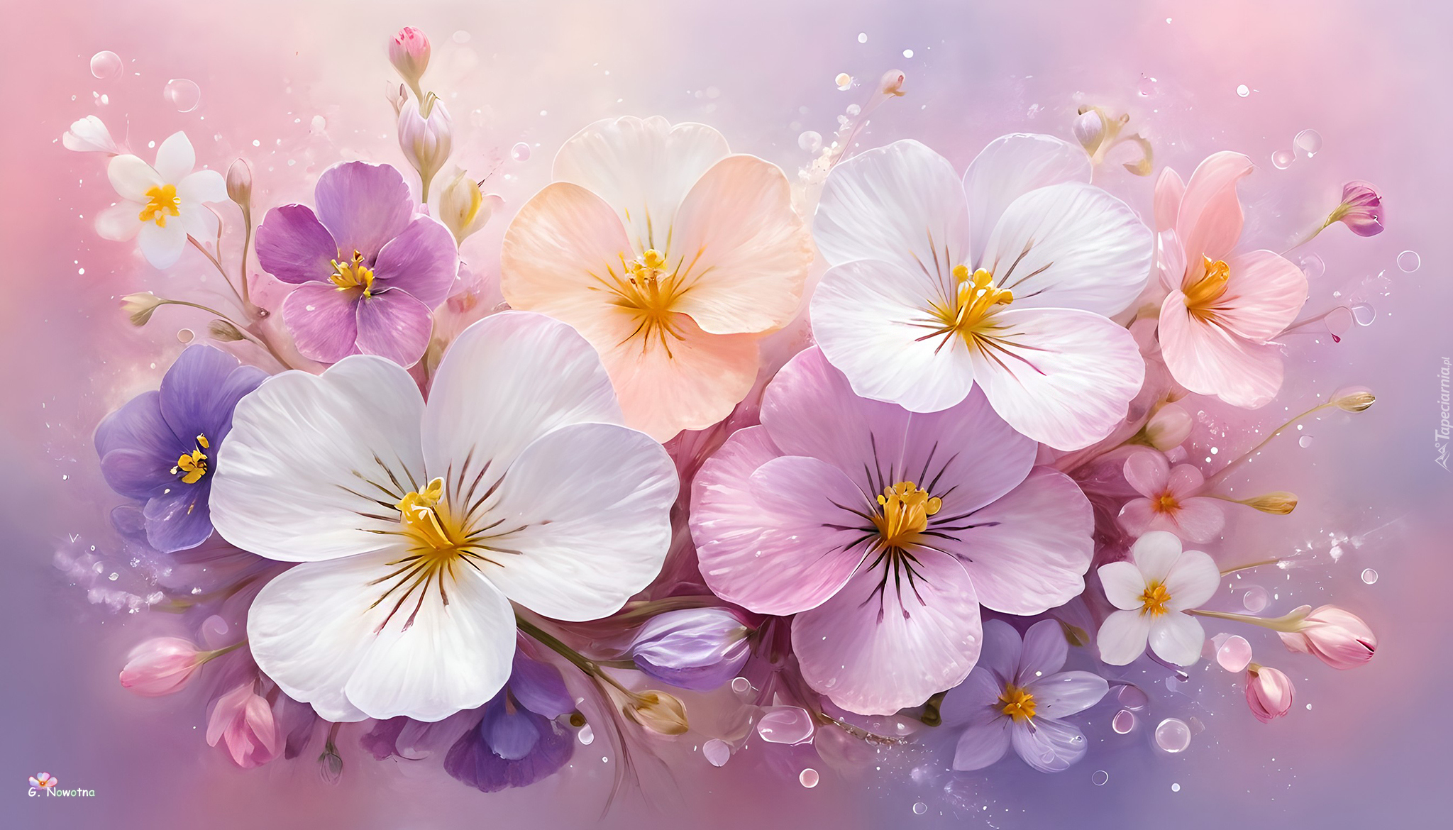 Edytor tapety: Grafika z białymi i różowymi kwiatami