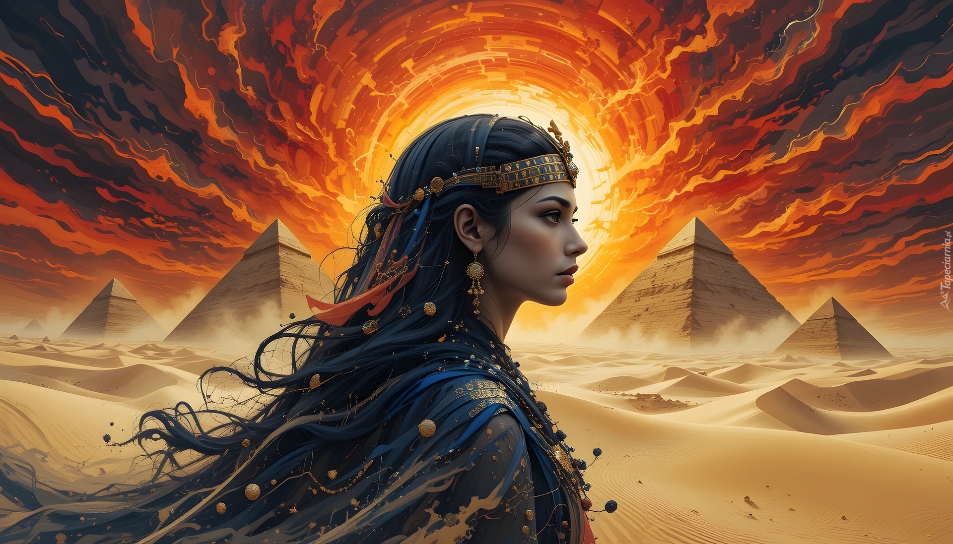 Edytor tapety: Profil Egipcjanki na tle piramid