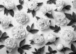 Edytor tapety: Różowe i białe piwonie z listkami na różowym tle