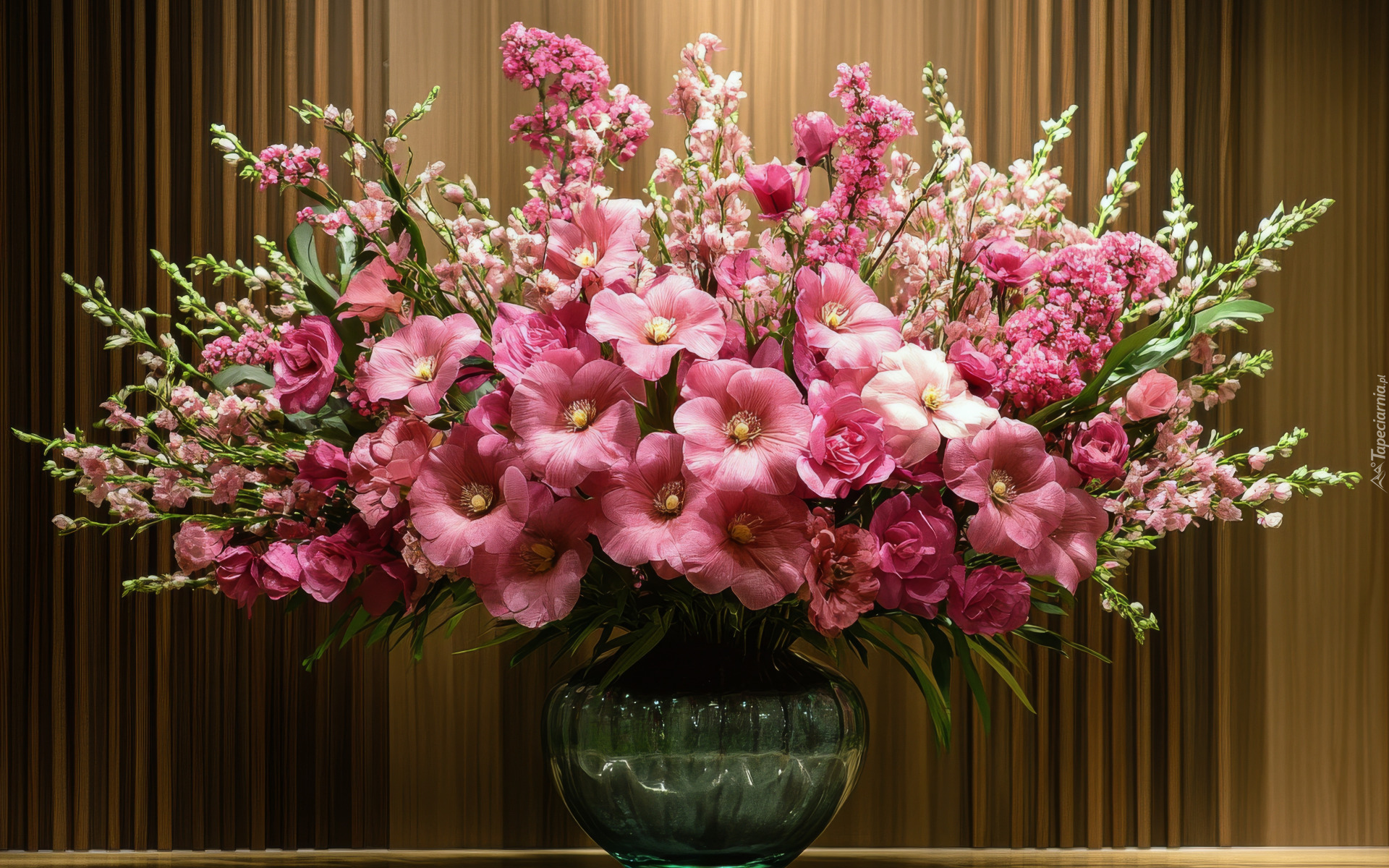 Edytor tapety: Bukiet różowych kwiatów w wazonie
