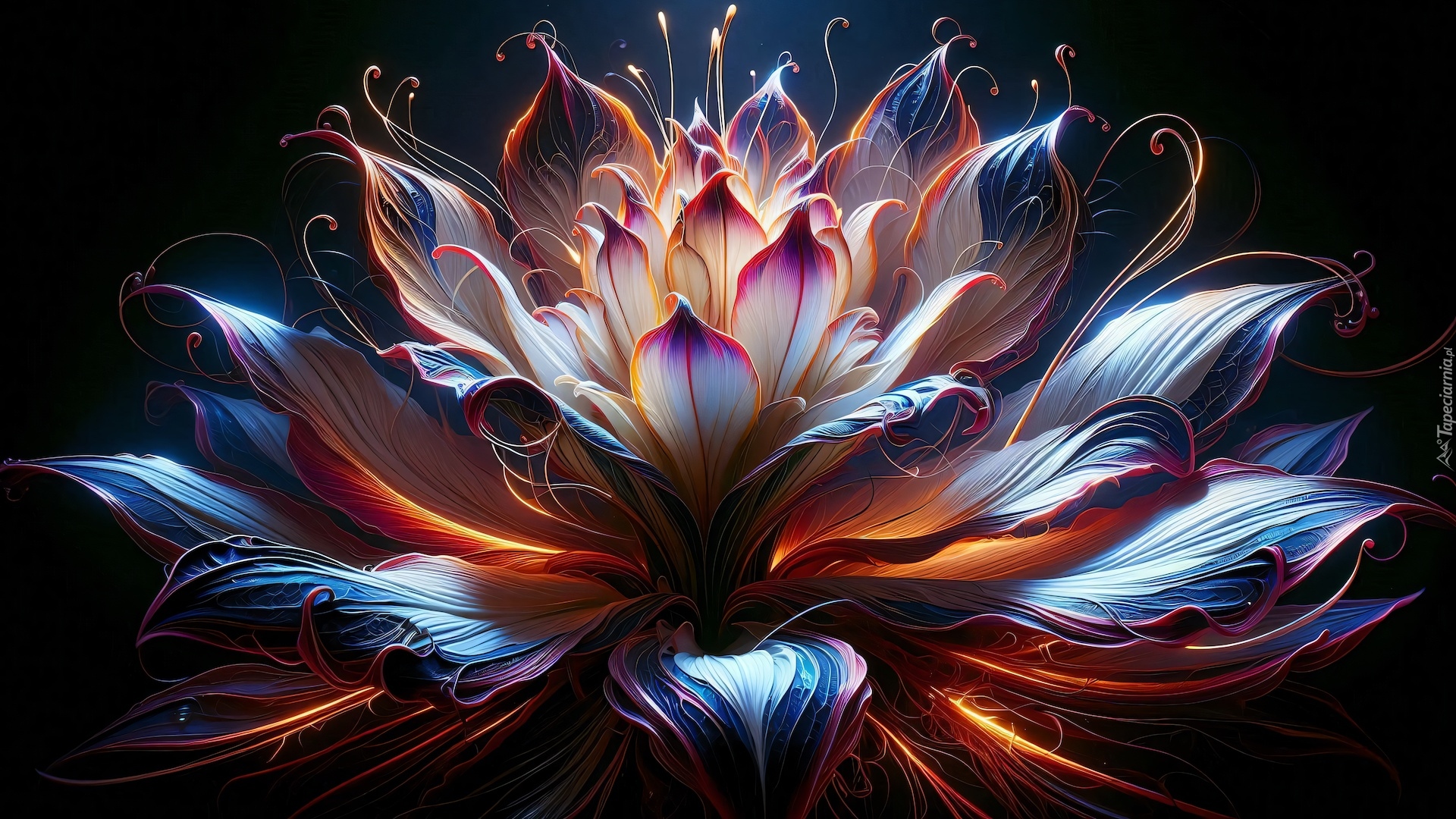 Edytor tapety: Rozświetlony kolorowy kwiat na czarnym tle
