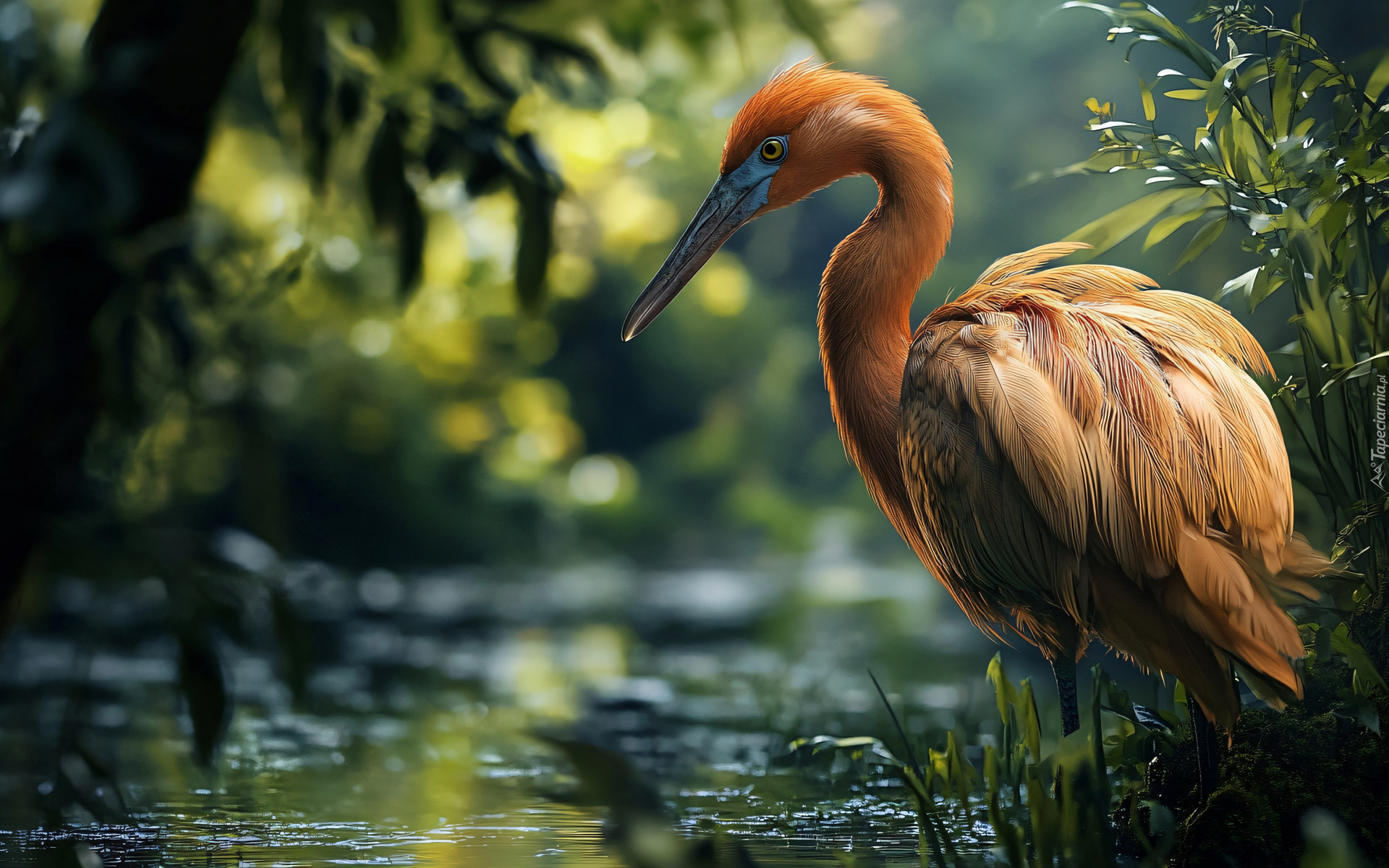 Edytor tapety: Brązowa czapla wśród roślin w wodzie
