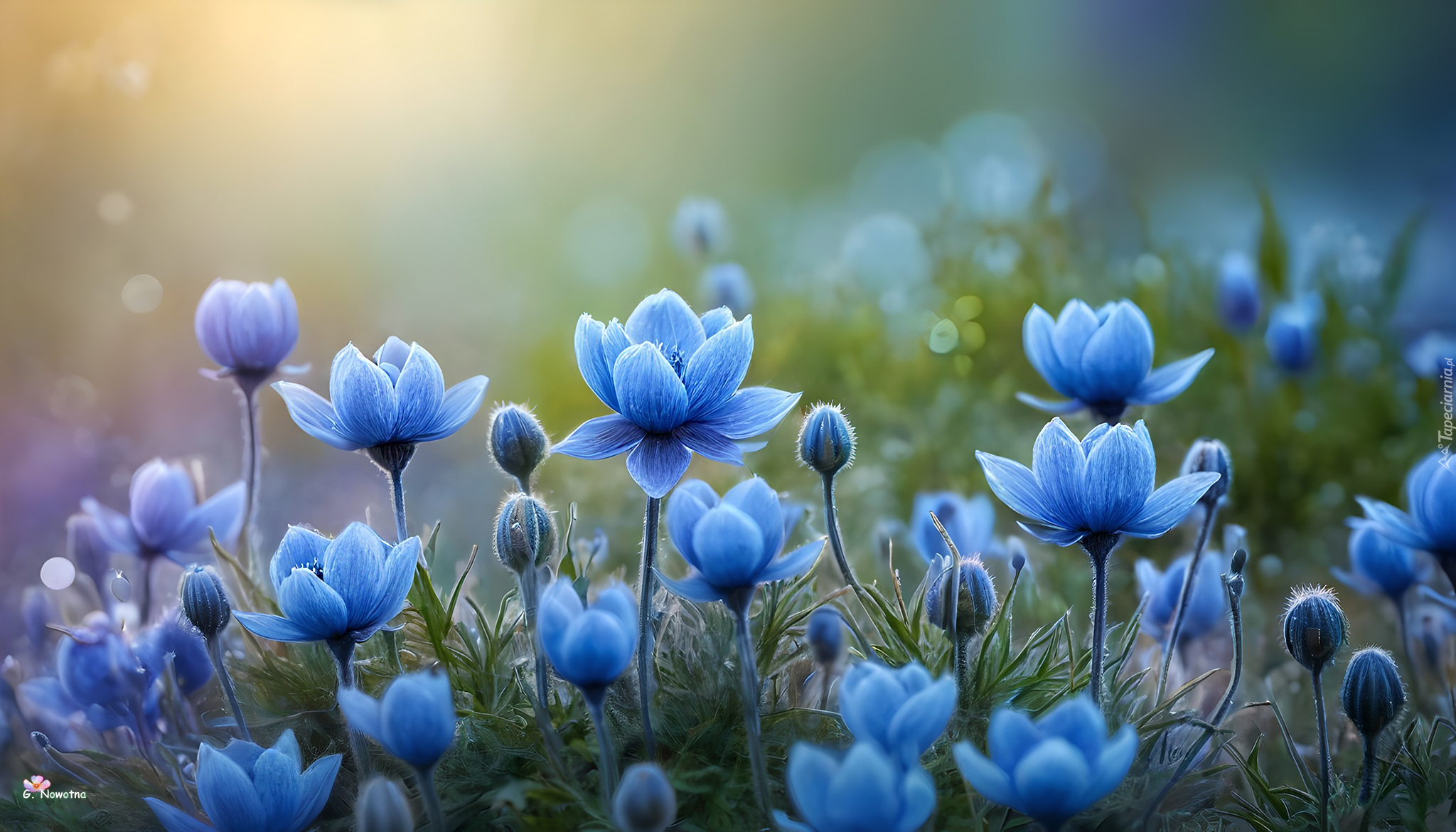 Edytor tapety: Grafika z niebieskimi rozkwitającymi kwiatami