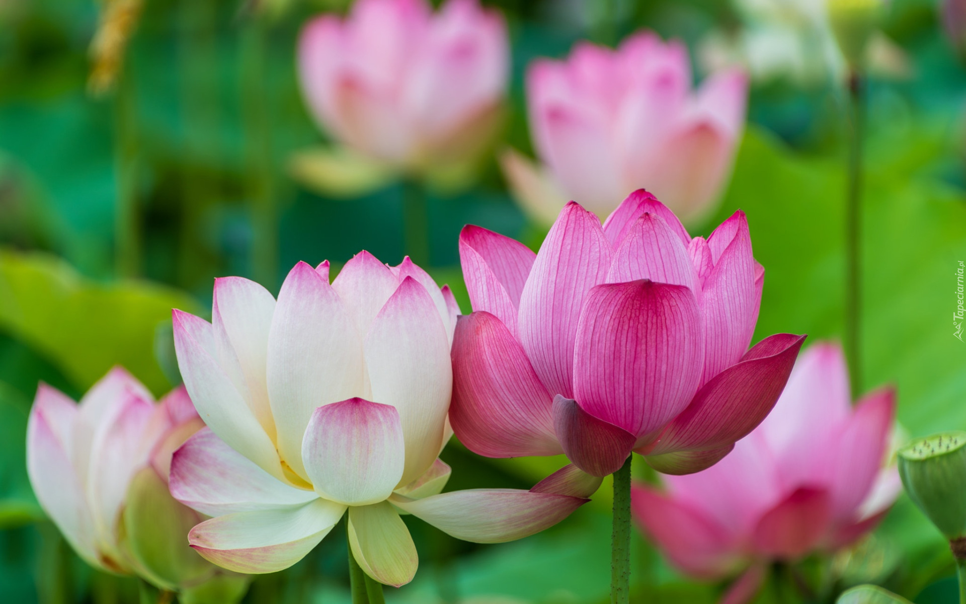 Edytor tapety: Białe i różowe kwiaty lotosu