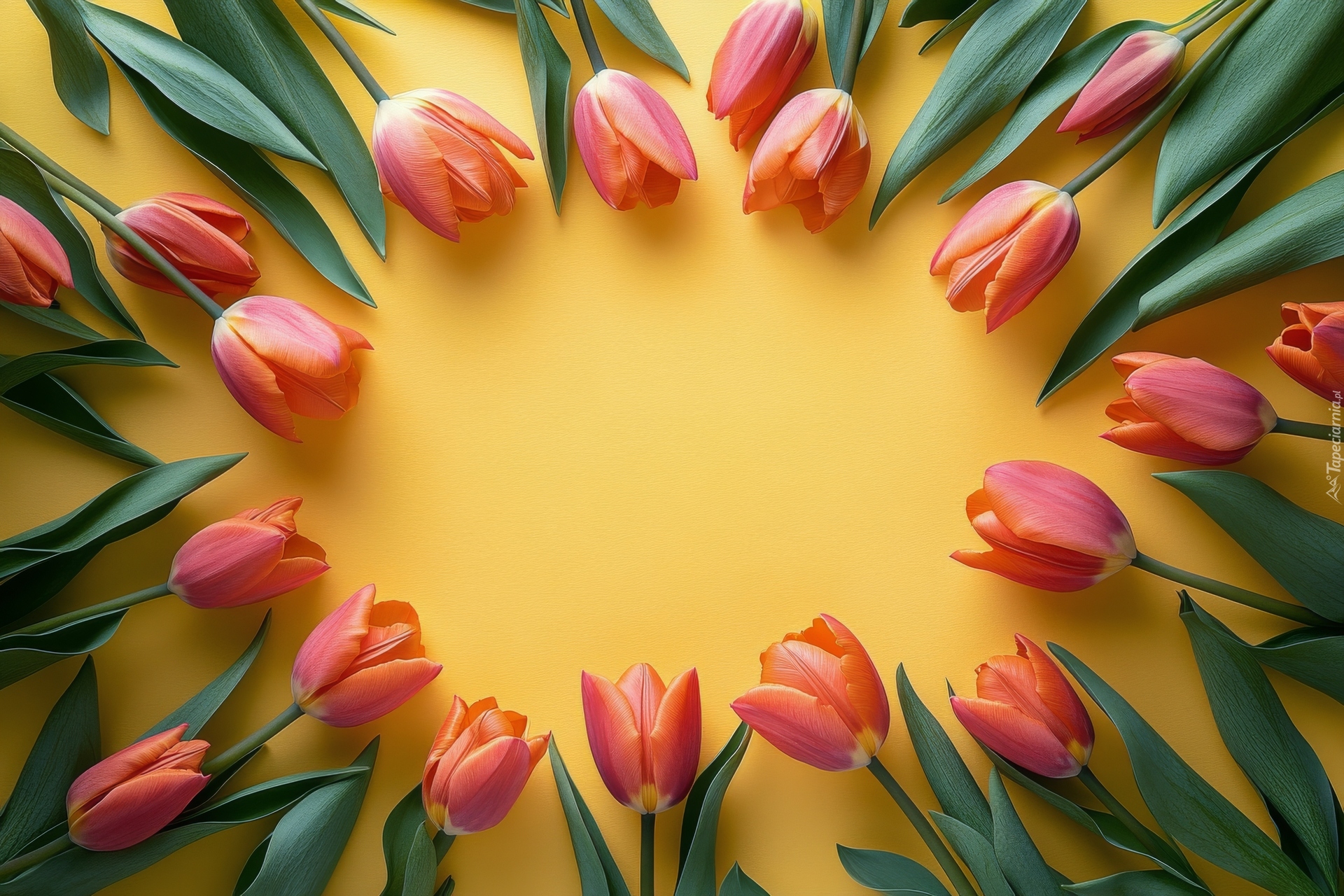 Edytor tapety: Różowe tulipany ułożone na żółtym tle