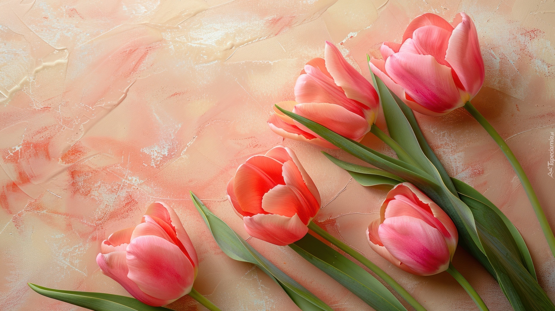 Edytor tapety: Pięć różowych tulipanów na marmurkowym tle