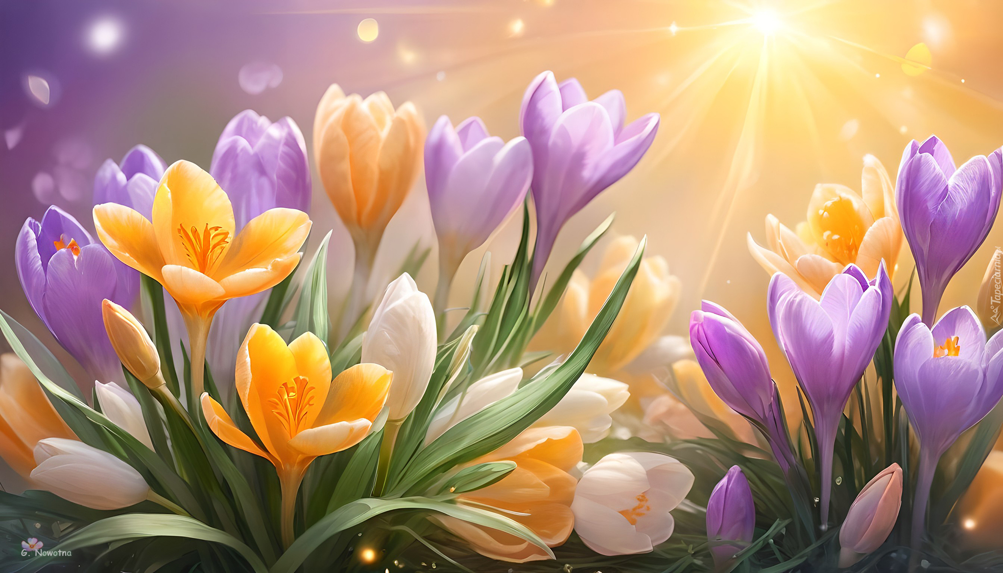Edytor tapety: Kolorowe krokusy w promieniach słońca