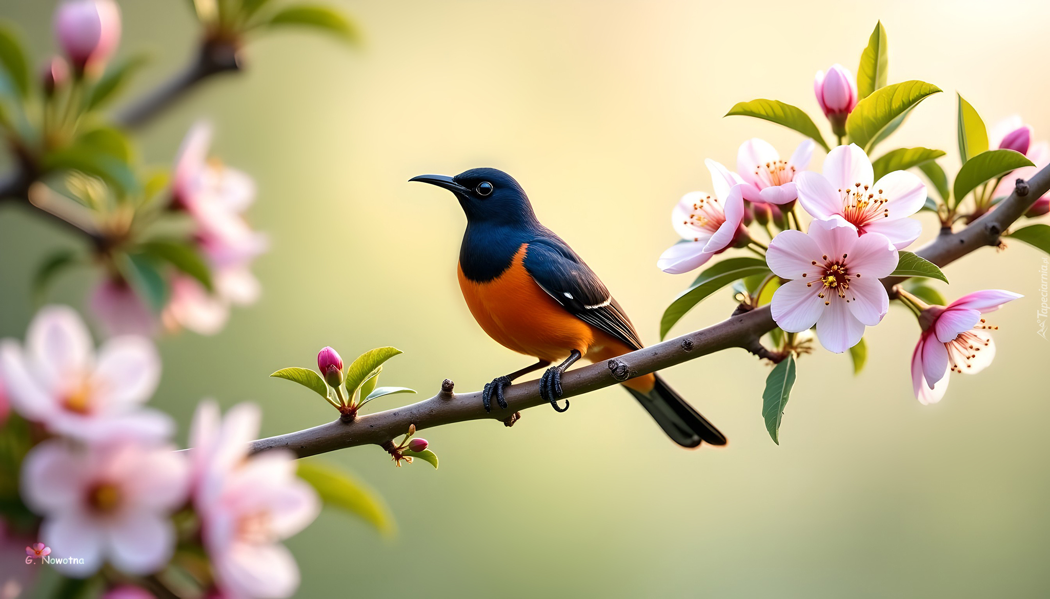 Edytor tapety: Czarno-pomarańczowy ptak