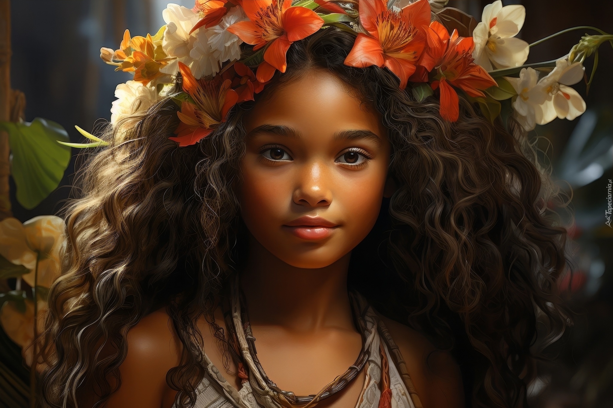 Edytor tapety: Dziewczynka w wianku na kręconych długich włosach