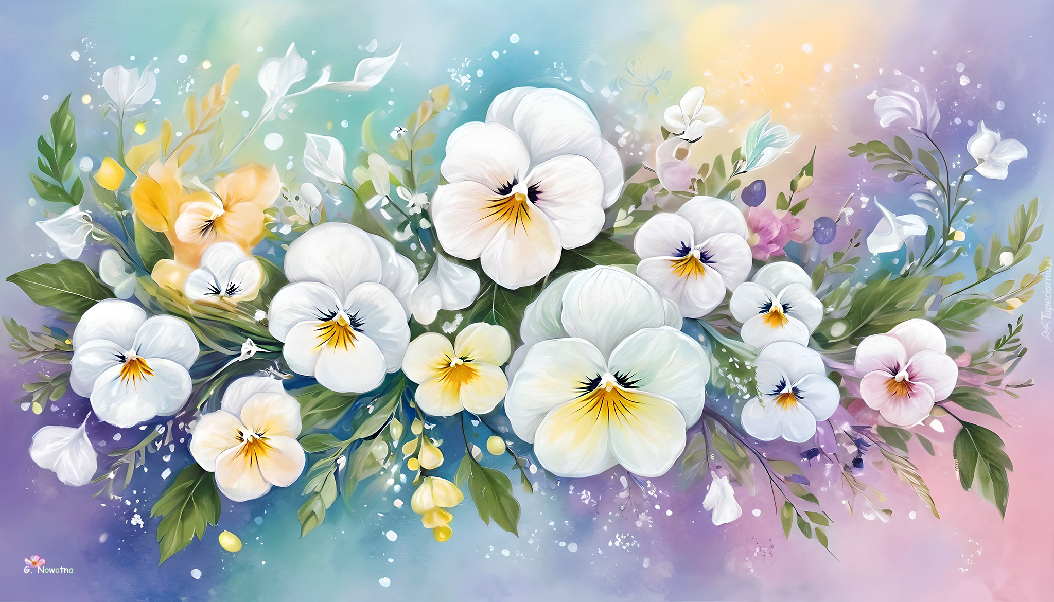 Edytor tapety: Grafika z białymi bratkami