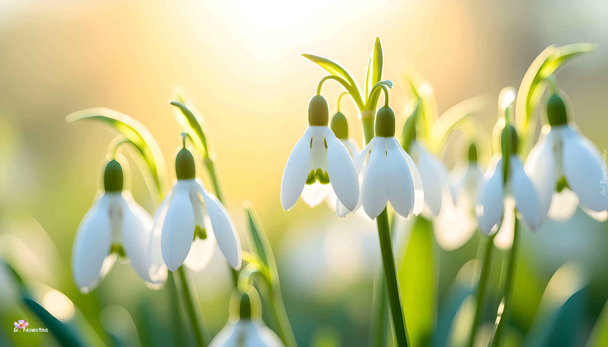 Edytor tapety: Białe przebiśniegi w słonecznym blasku