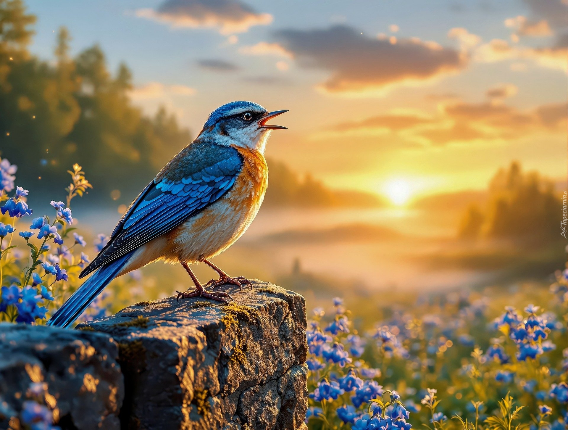 Edytor tapety: Niebiesko-brązowy ptak na kamieniu