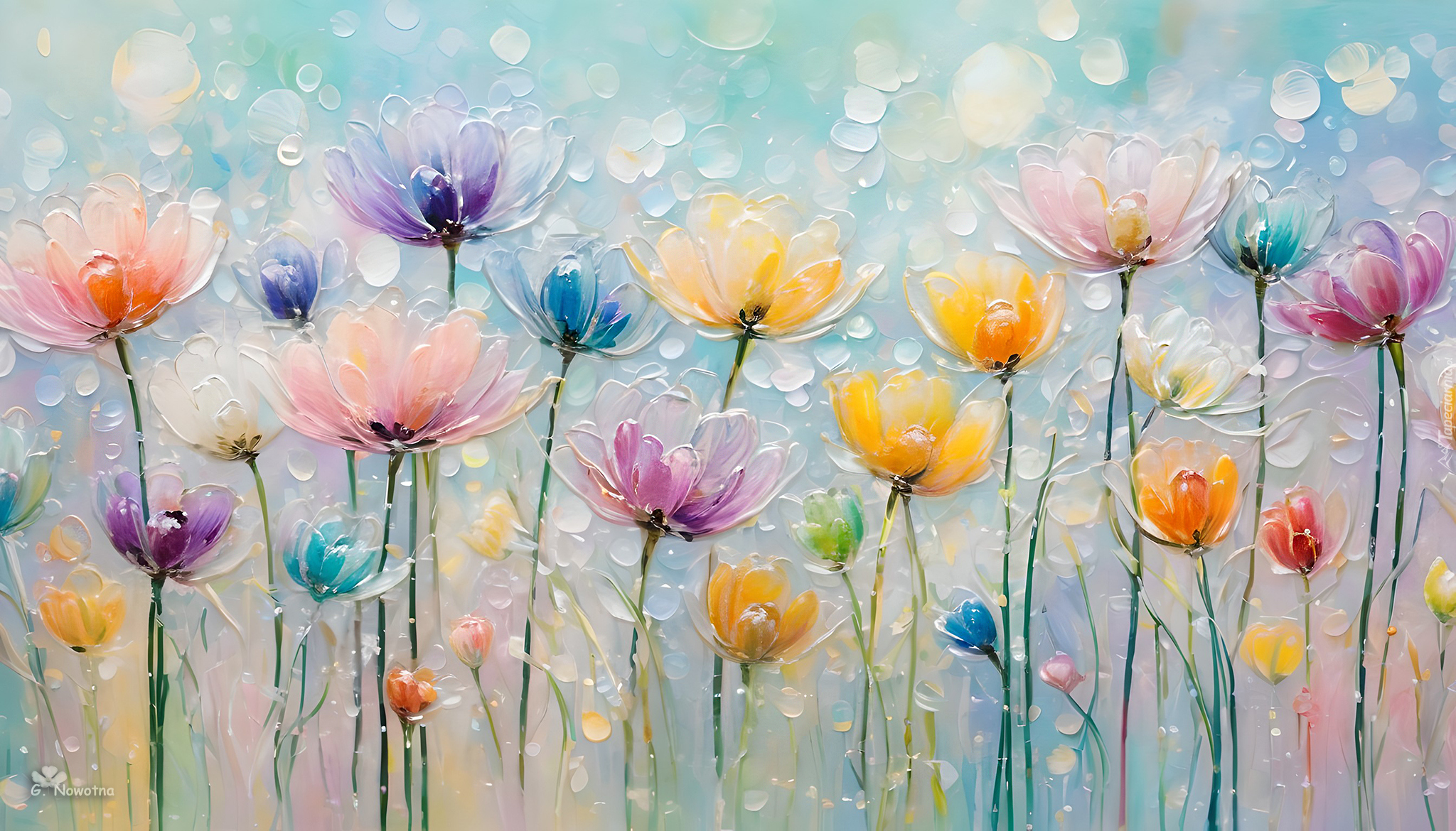 Edytor tapety: Grafika z kolorowymi kwiatami na długich łodygach