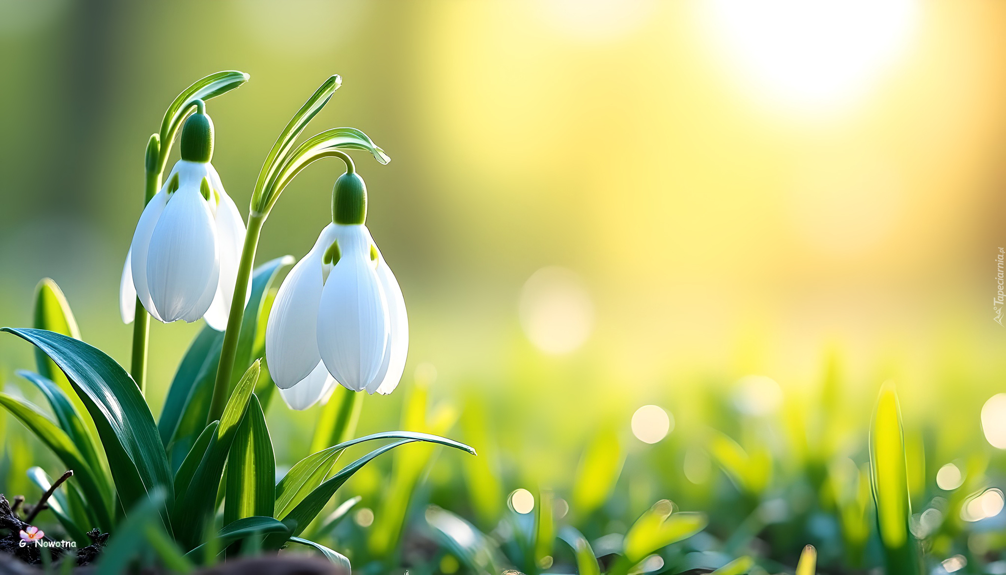 Edytor tapety: Dwa przebiśniegi na rozmytym rozświetlonym tle