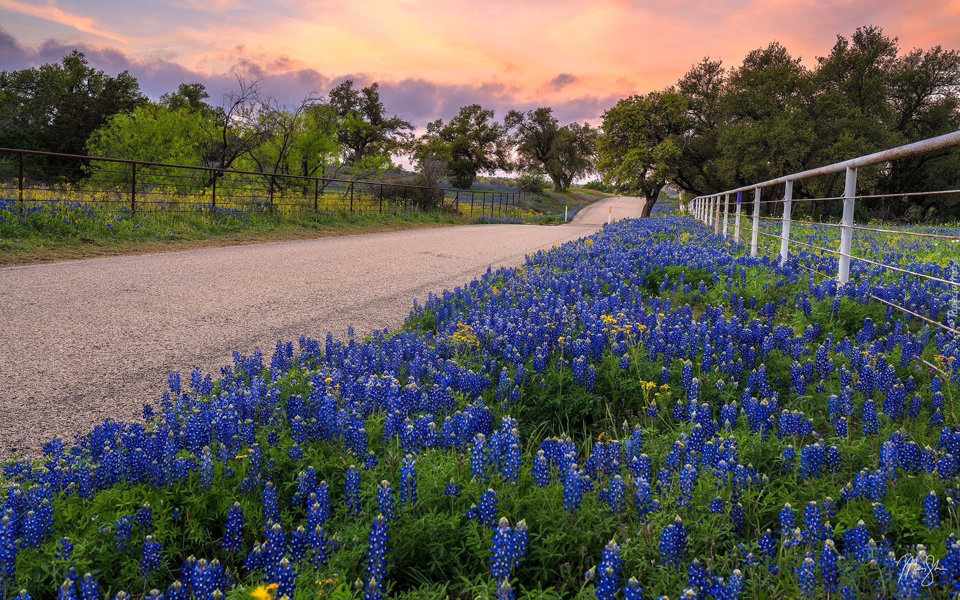 Edytor tapety: Niebieski łubin obok ogrodzenia przy drodze