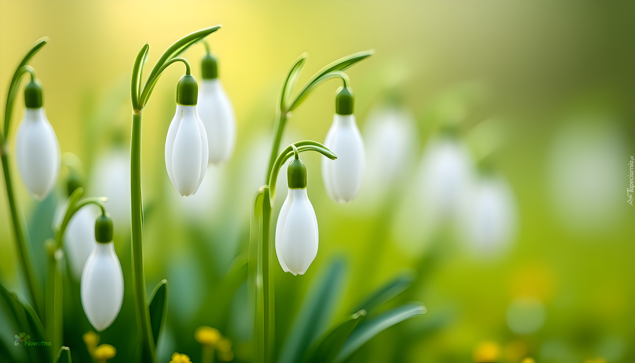 Edytor tapety: Pąki białych przebiśniegów na rozmytym tle