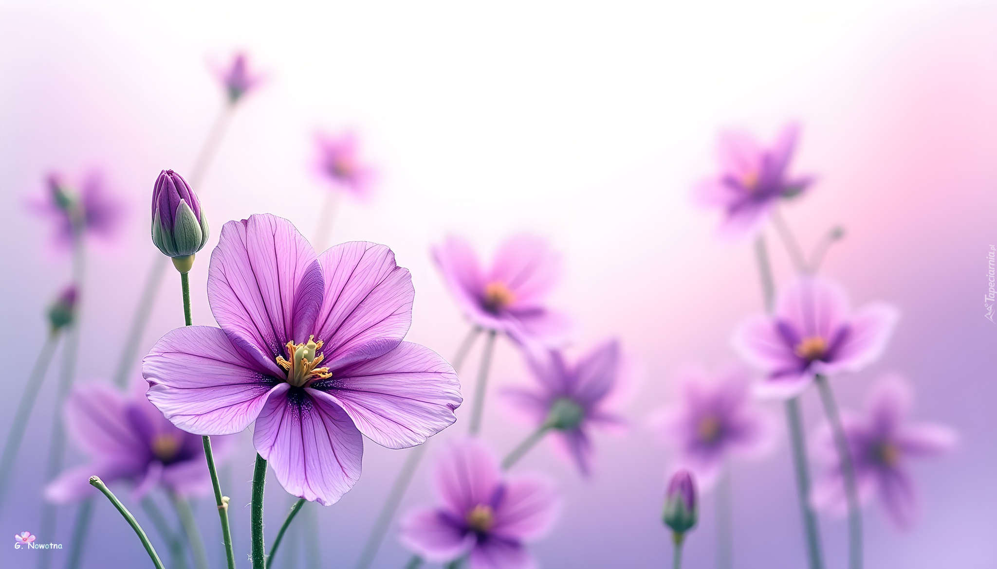 Edytor tapety: Grafika z fioletowymi kwiatami na rozmytym tle