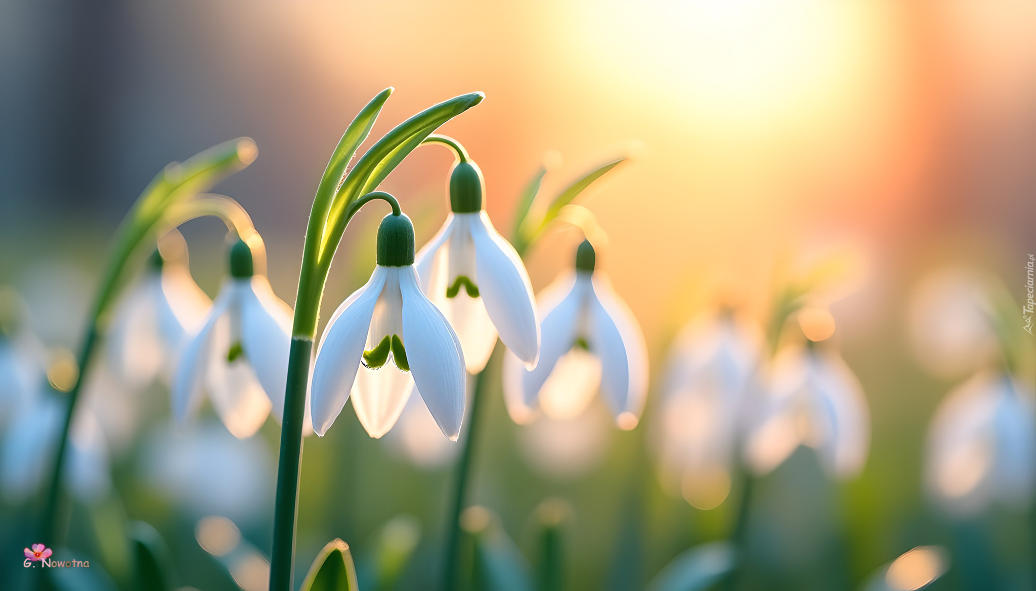 Edytor tapety: Rozkwitające przebiśniegi w słonecznym świetle