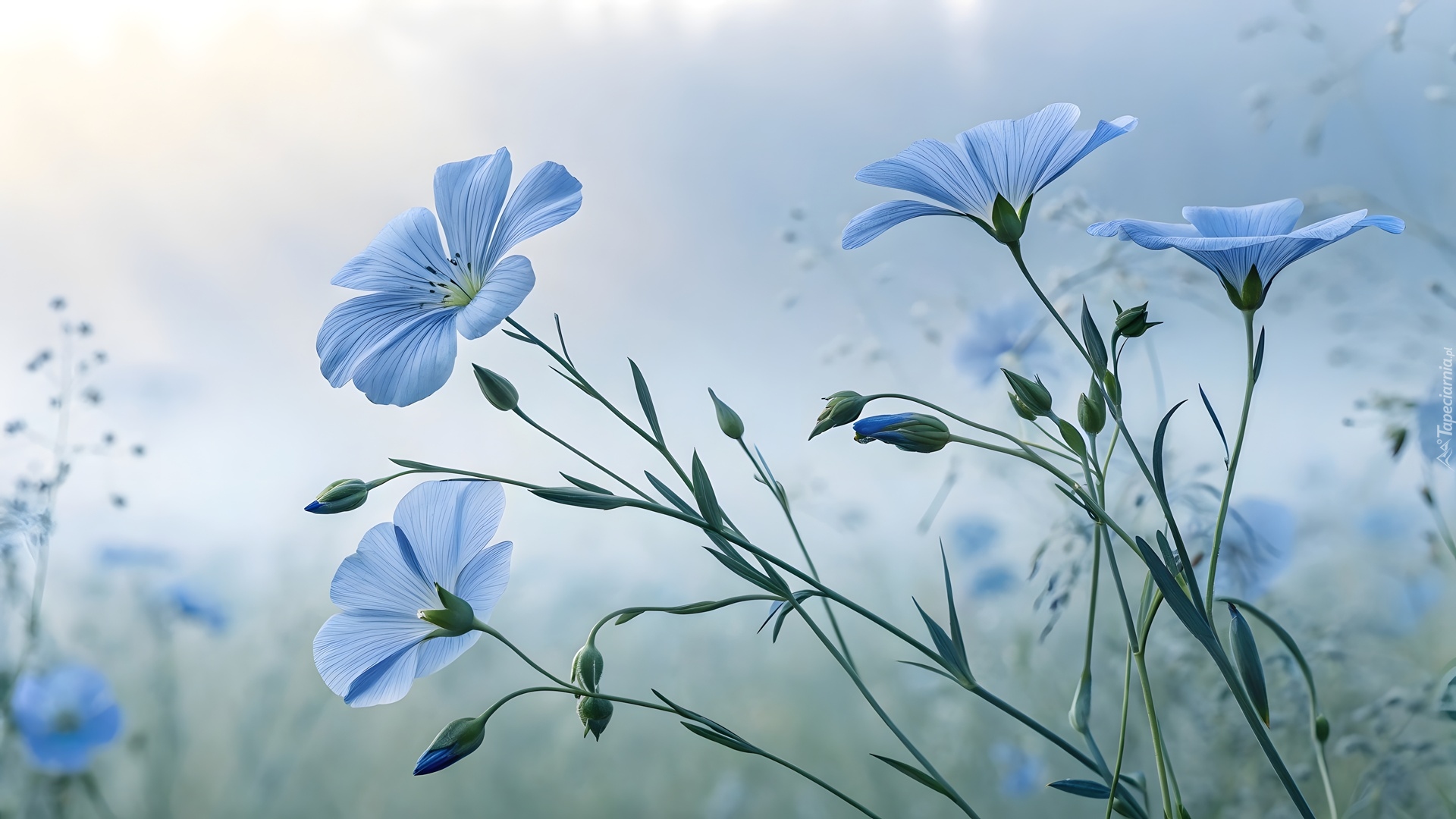 Edytor tapety: Niebieskie kwiaty na zamglonym tle