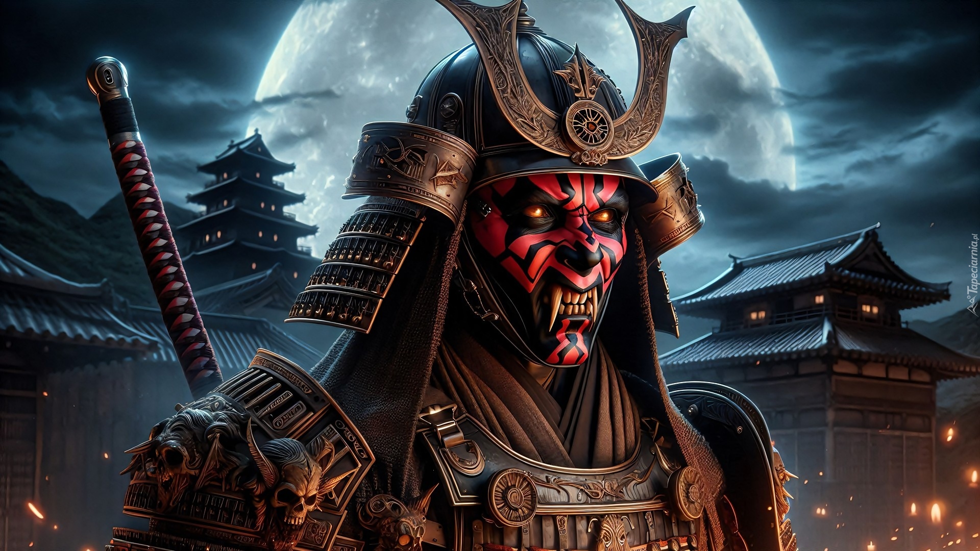 Edytor tapety: Darth Maul jako samuraj w hełmie
