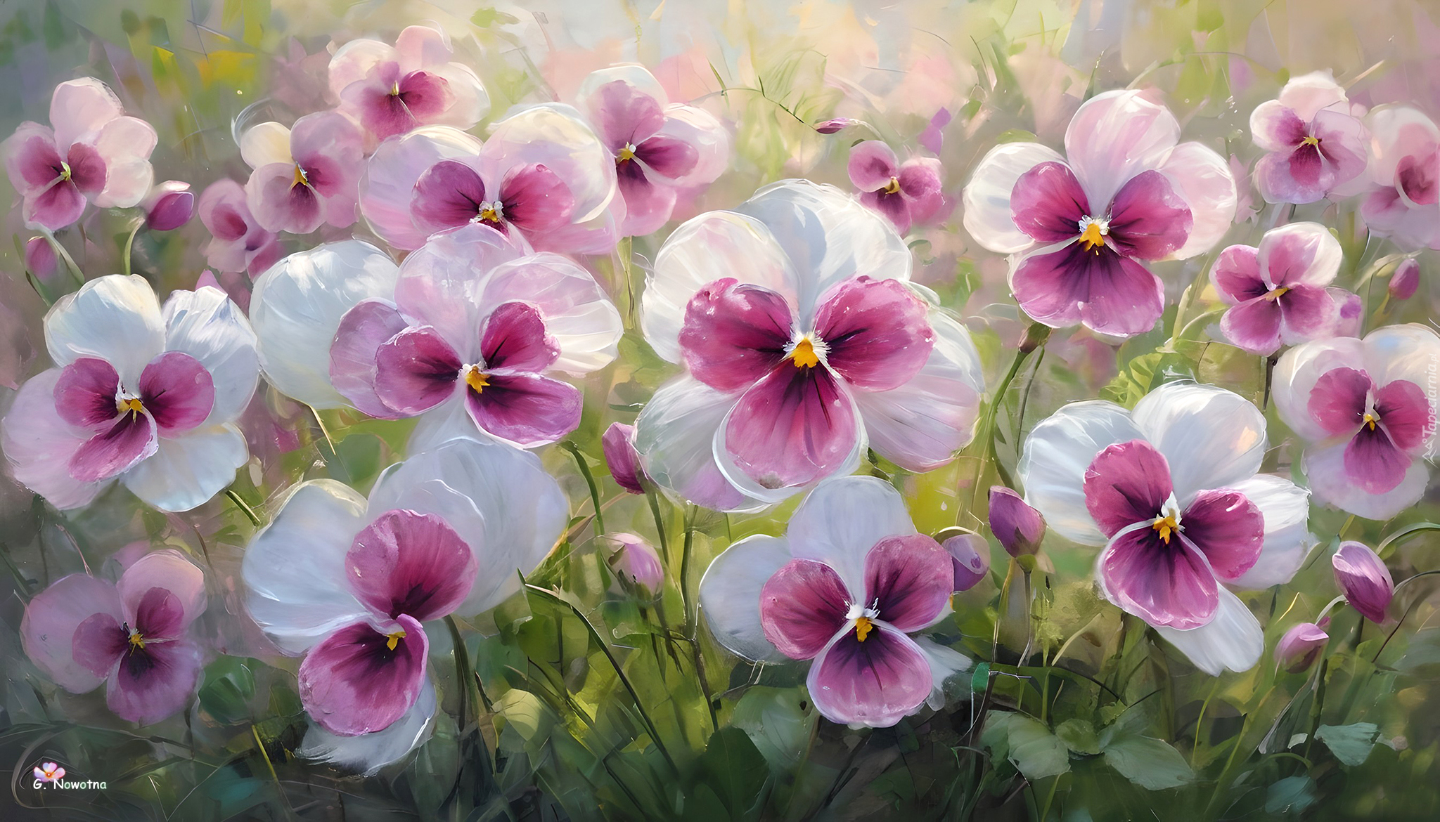 Edytor tapety: Biało-różowe bratki w grafice