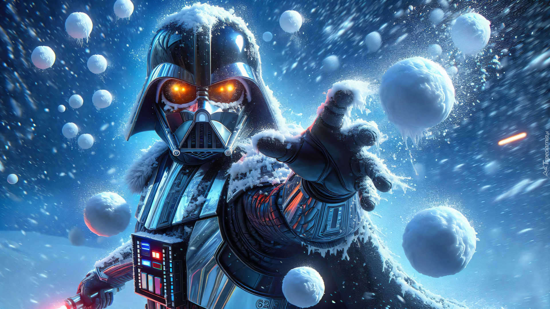 Edytor tapety: Darth Vader ze świecącymi oczami i kulami śnieżnymi
