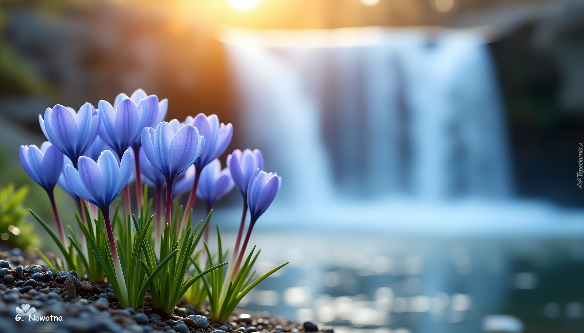 Edytor tapety: Kępka niebieskich krokusów w grafice