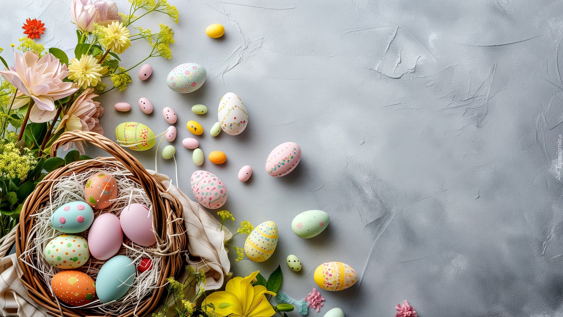 Edytor tapety: Kompozycja z pisankami i kwiatami