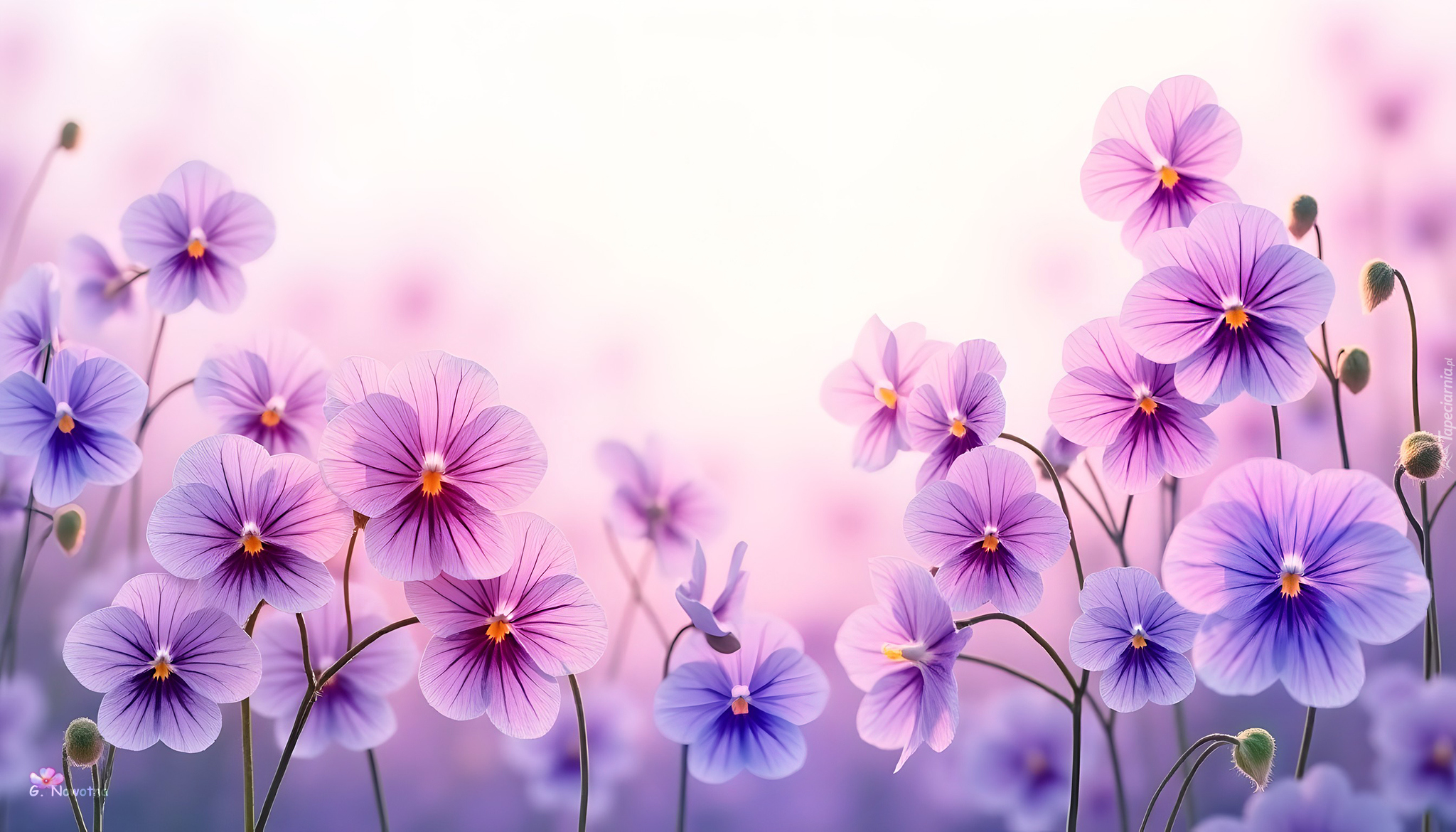 Edytor tapety: Grafika z fioletowymi kwiatami na rozświetlonym tle