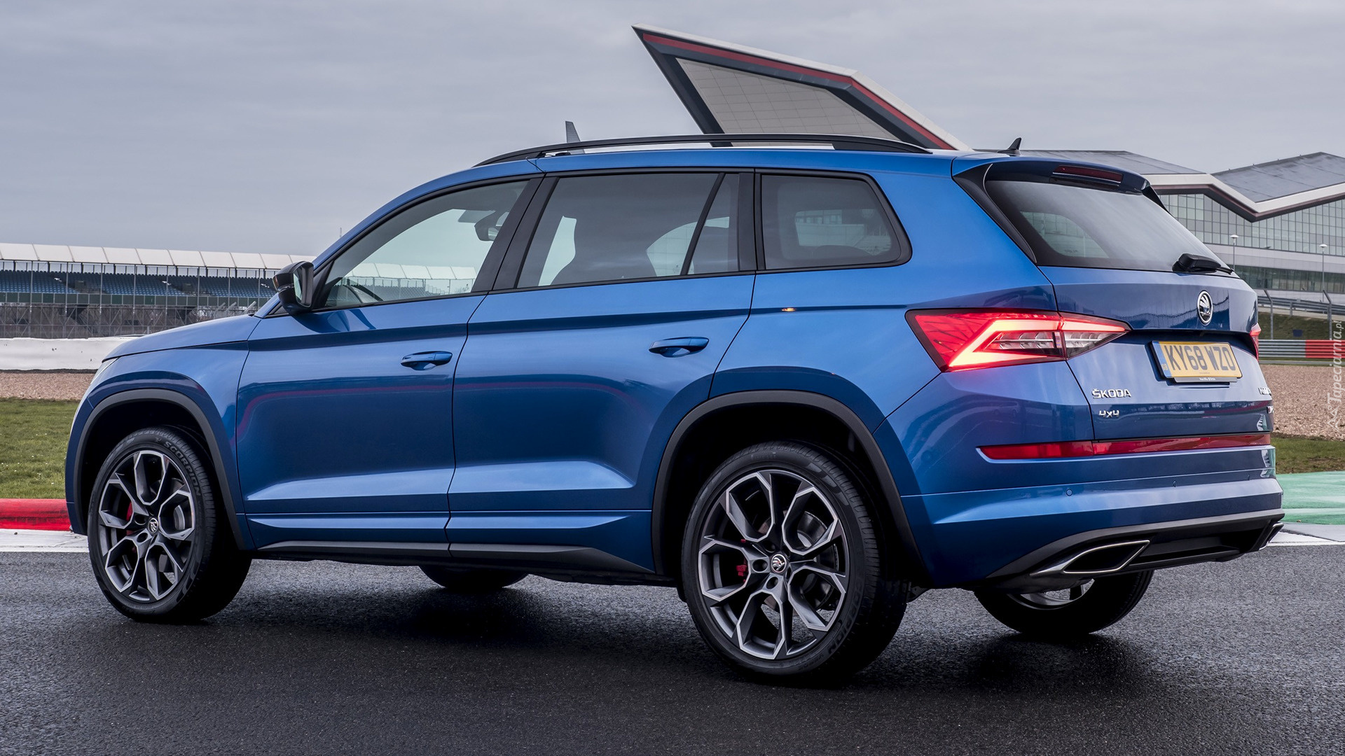 Edytor tapety: Niebieska Skoda Kodiaq RS bok i tył