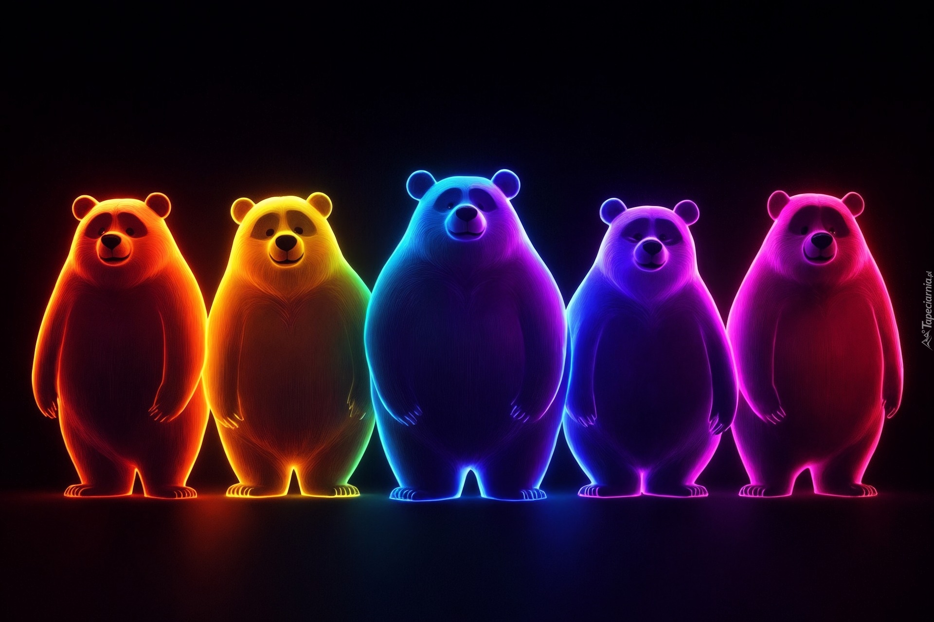 Edytor tapety: Pięć niedźwiedzi podświetlonych kolorowym neonem