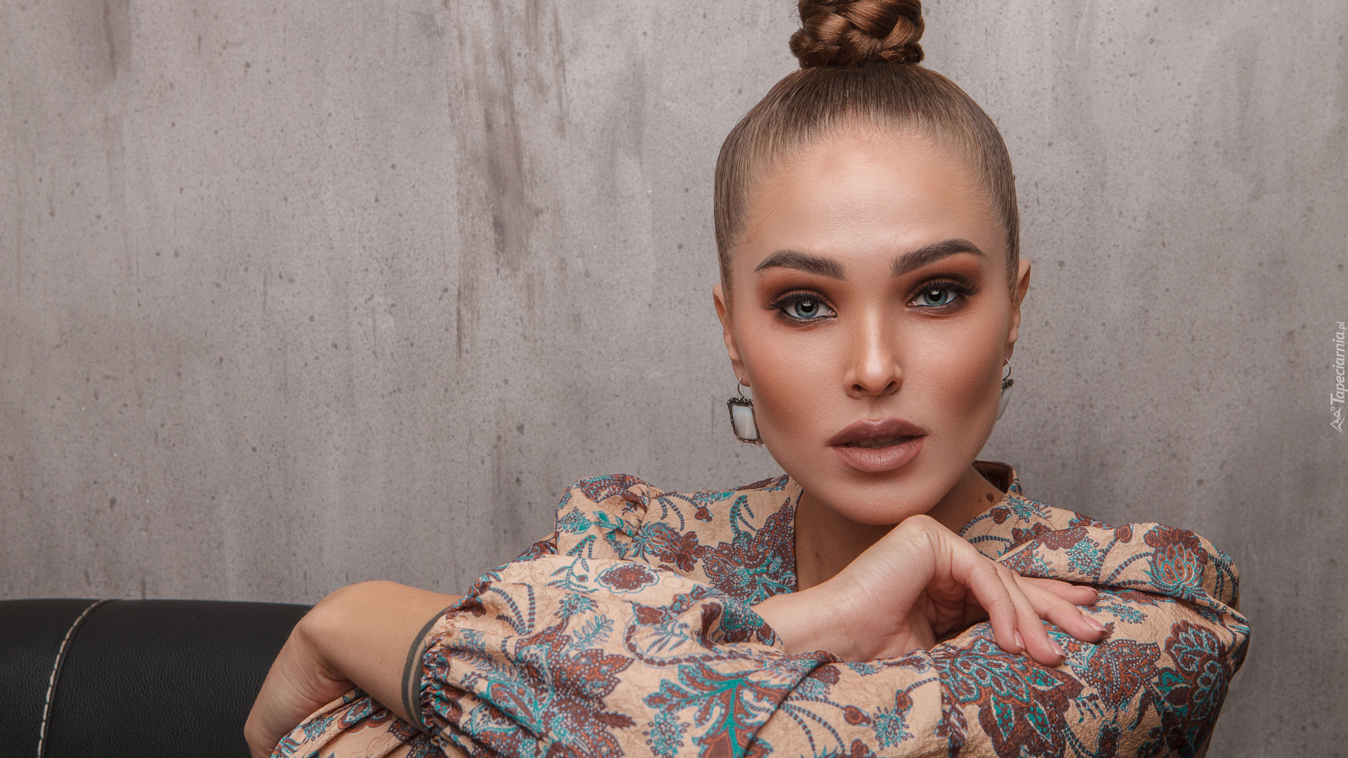 Edytor tapety: Kobieta z włosami upiętymi na czubku głowy
