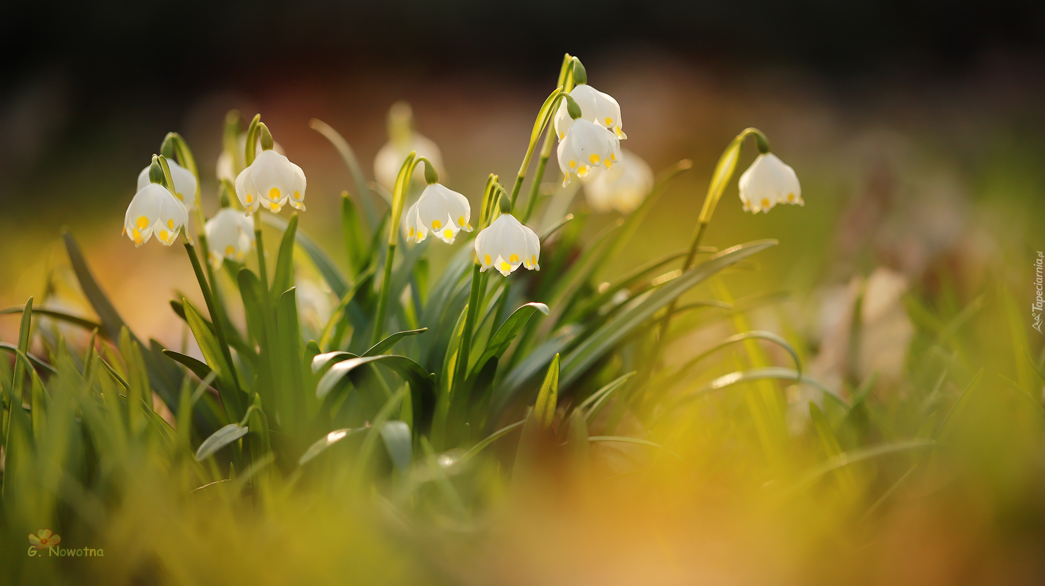 Edytor tapety: Kępka białych śnieżyc na rozmytym tle