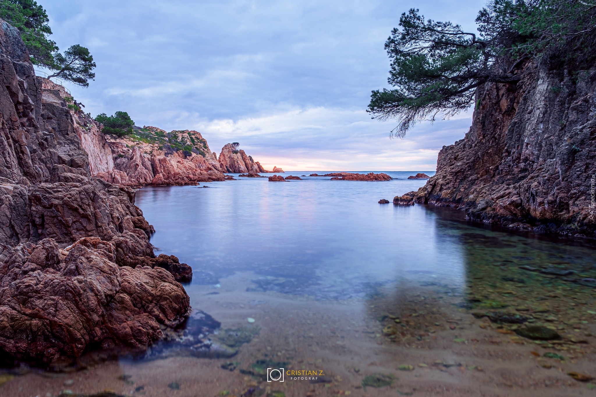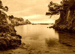 Edytor tapety: Drzewa na skałach na hiszpańskim wybrzeżu Costa Brava