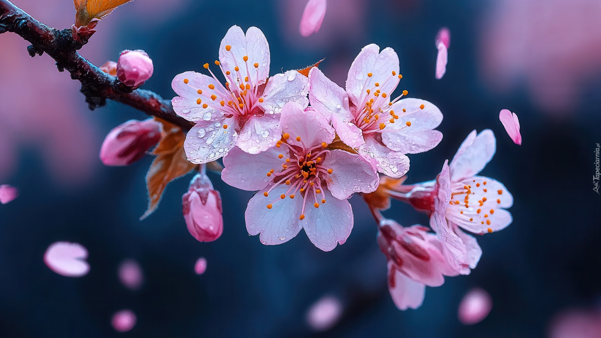 Edytor tapety: Gałązka z różowymi kwiatami i pąkami